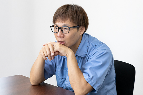 私がこの道に進んだのは、「楽しそう」というシンプルな直感からでした。カガミはガラスの成形から加工までを一貫生産していると知り、その魅力に惹かれて面接を受けたのが始まりです。入社当時は火切り職場という製品の口元を加工する部門に配属され、3年ほど経ってから切子職場へ配属されることになりました。切子の経験は全く無く、不安半分、面白そう半分といった気持ちでした。